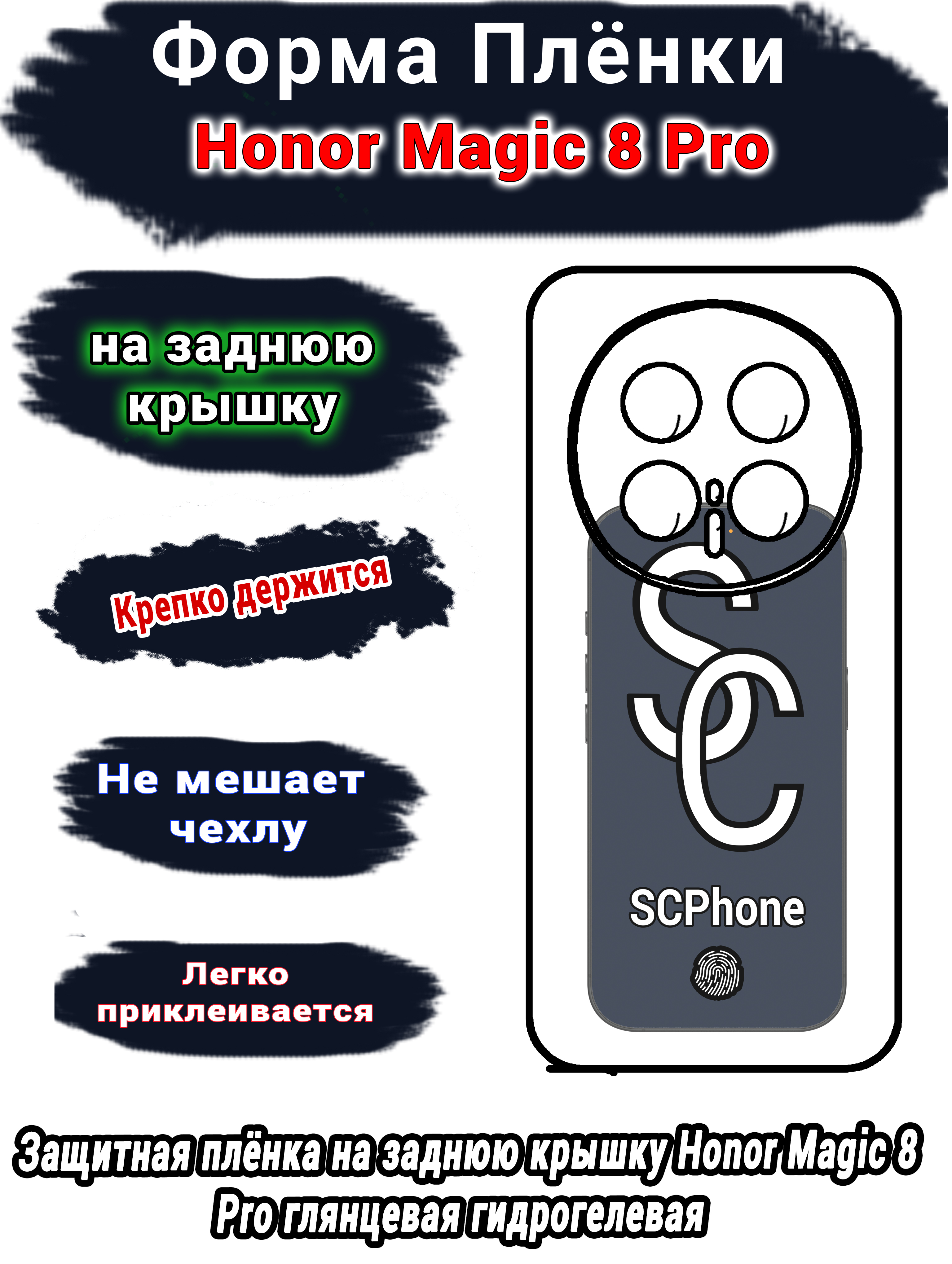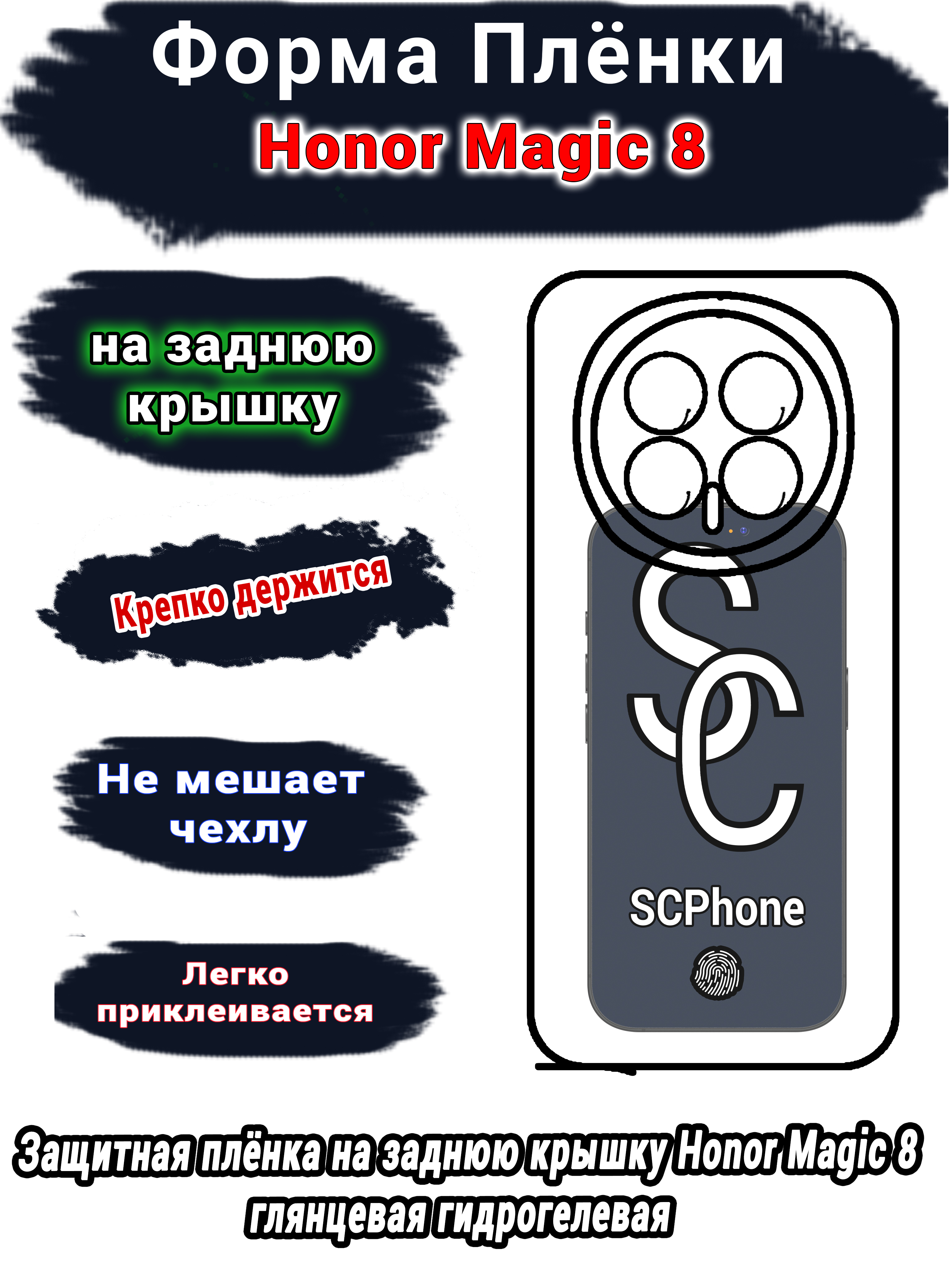 Защитная плёнка на заднюю крышку Honor Magic 8 Pro глянцевая гидрогелевая