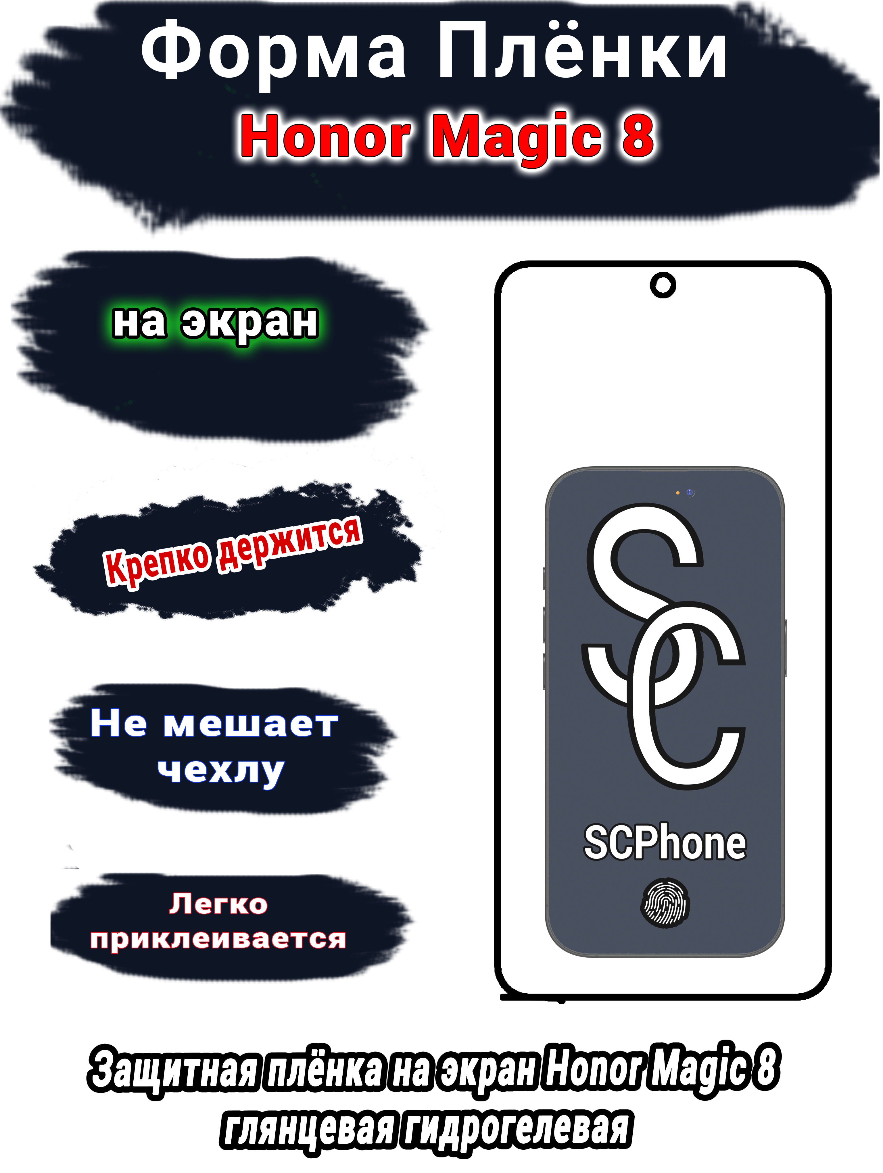 Защитная плёнка на экран Honor Magic 8 глянцевая гидрогелевая