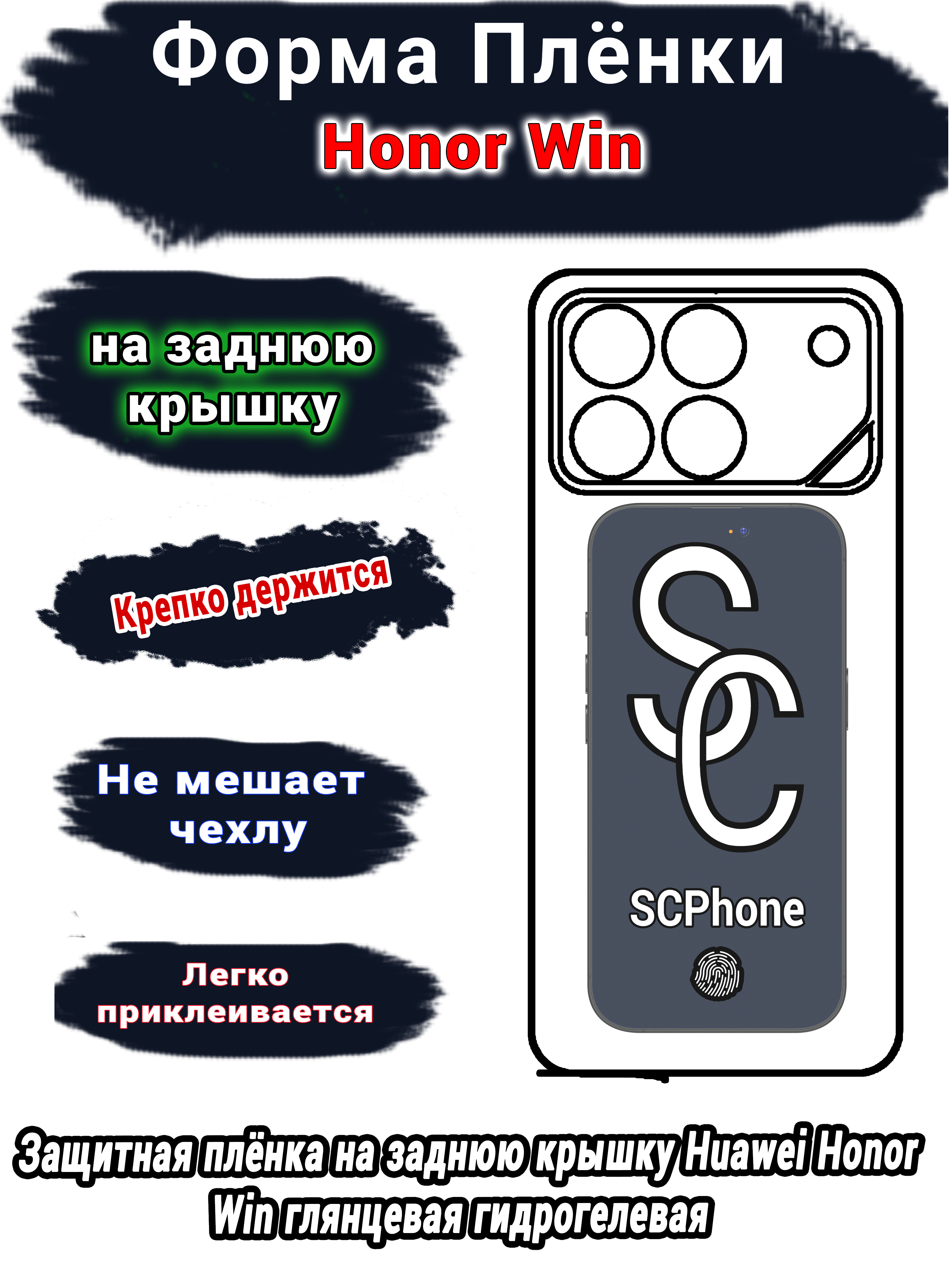 Защитная плёнка на заднюю крышку Huawei Honor Win глянцевая гидрогелевая