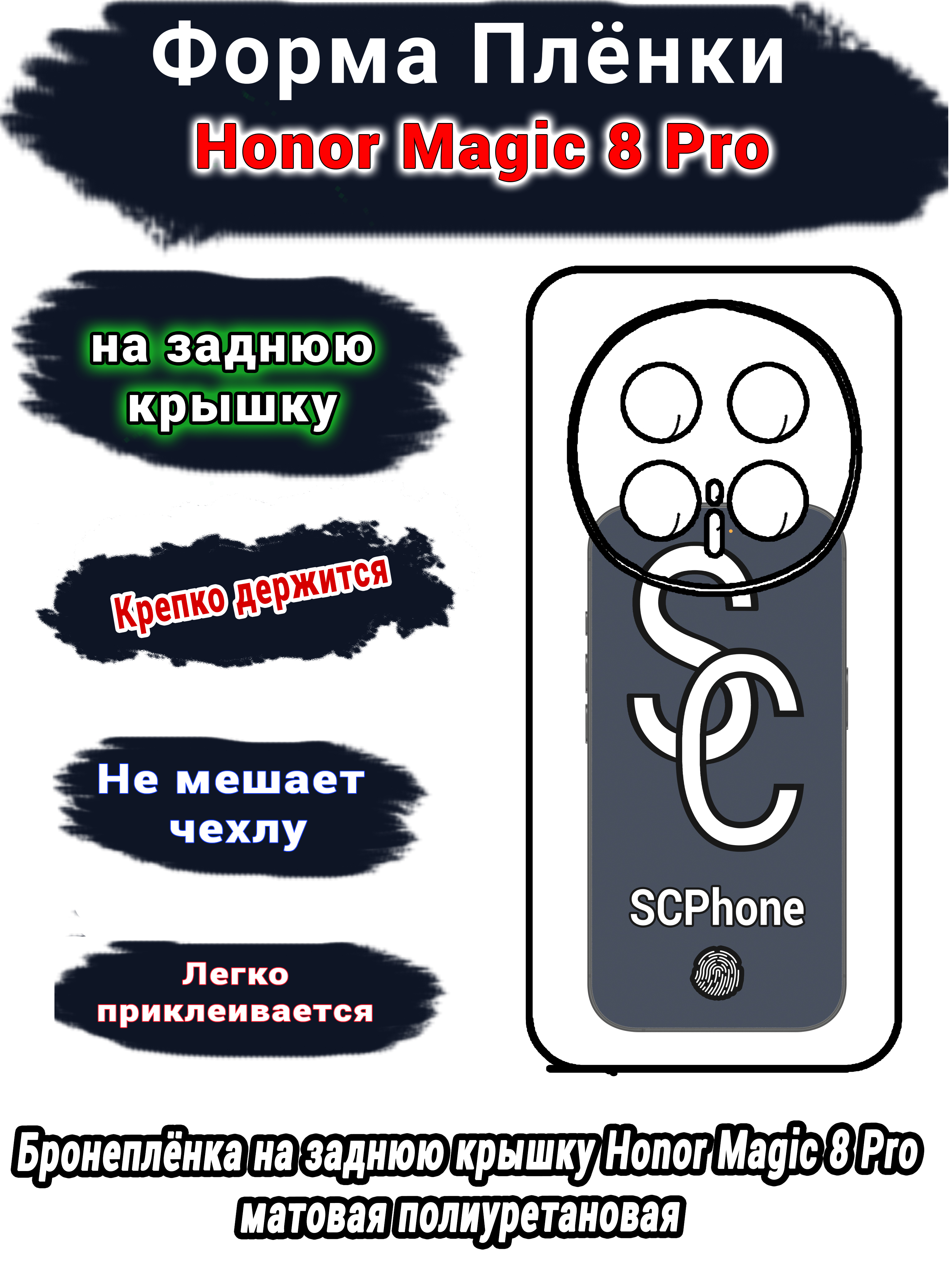 Защитная плёнка на заднюю крышку Honor Magic 8 Pro глянцевая гидрогелевая