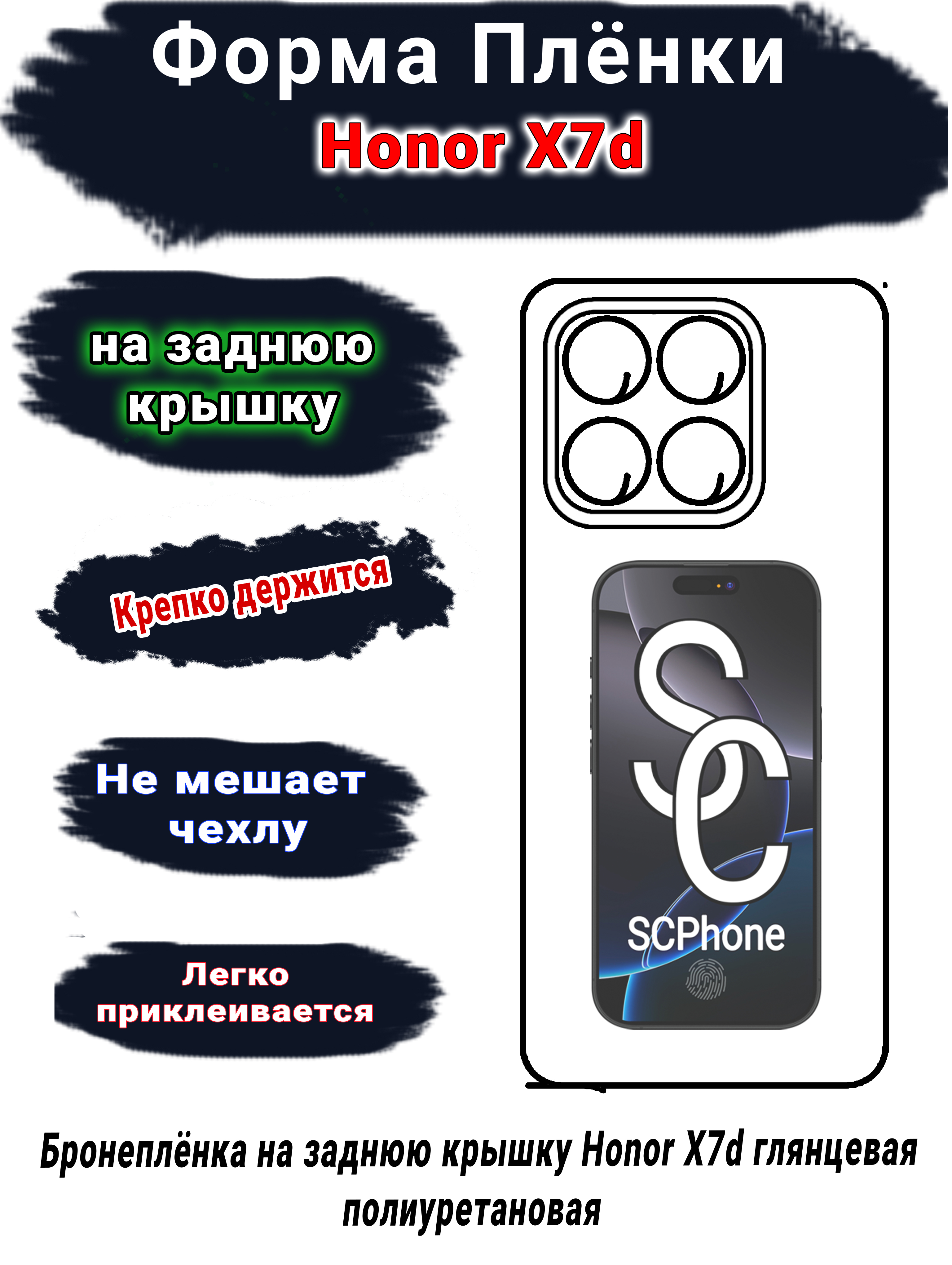 Защитная плёнка на заднюю крышку Honor X7d глянцевая гидрогелевая