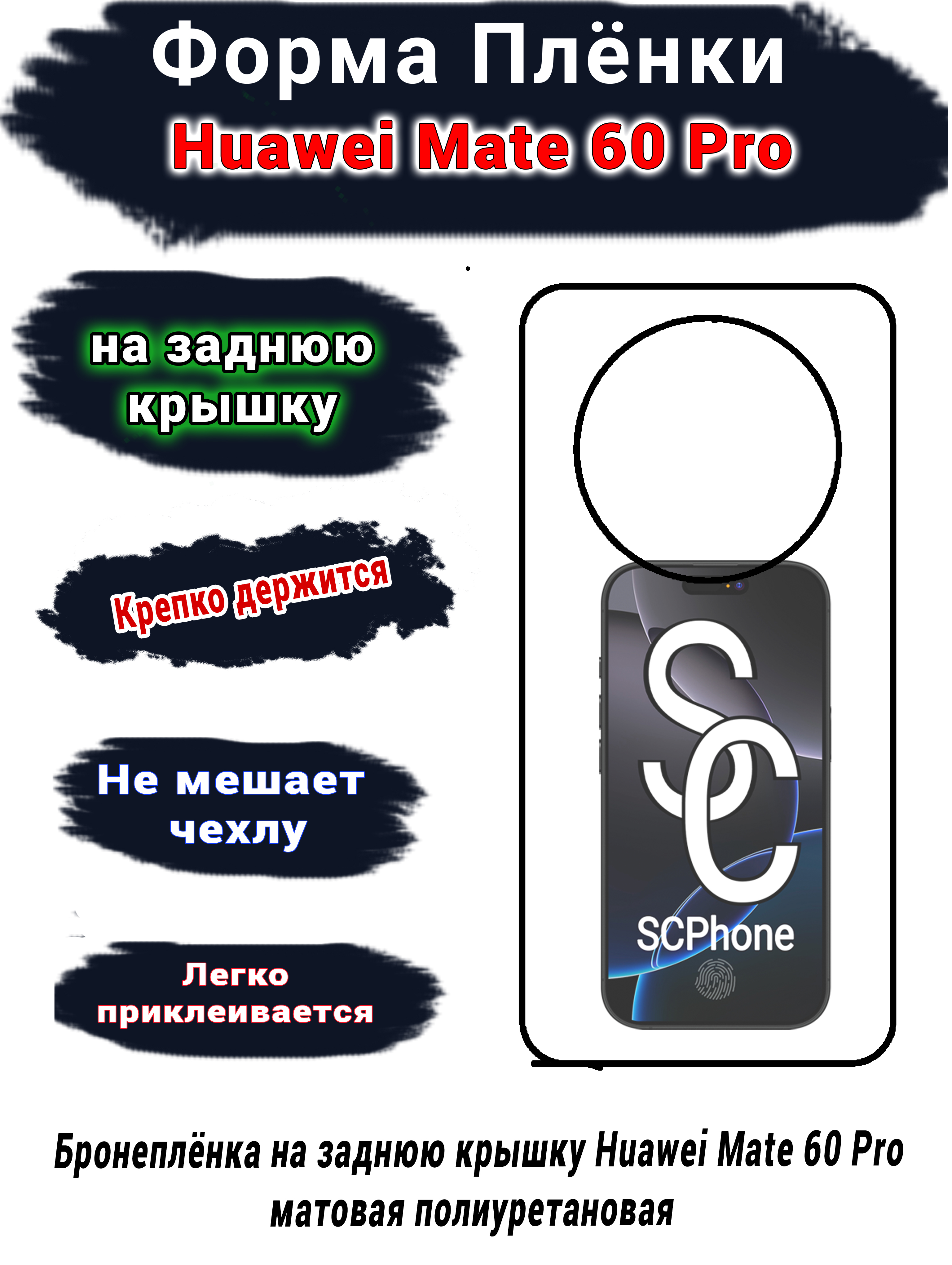 Защитная плёнка на заднюю крышку Huawei Mate 60 Pro глянцевая гидрогелевая