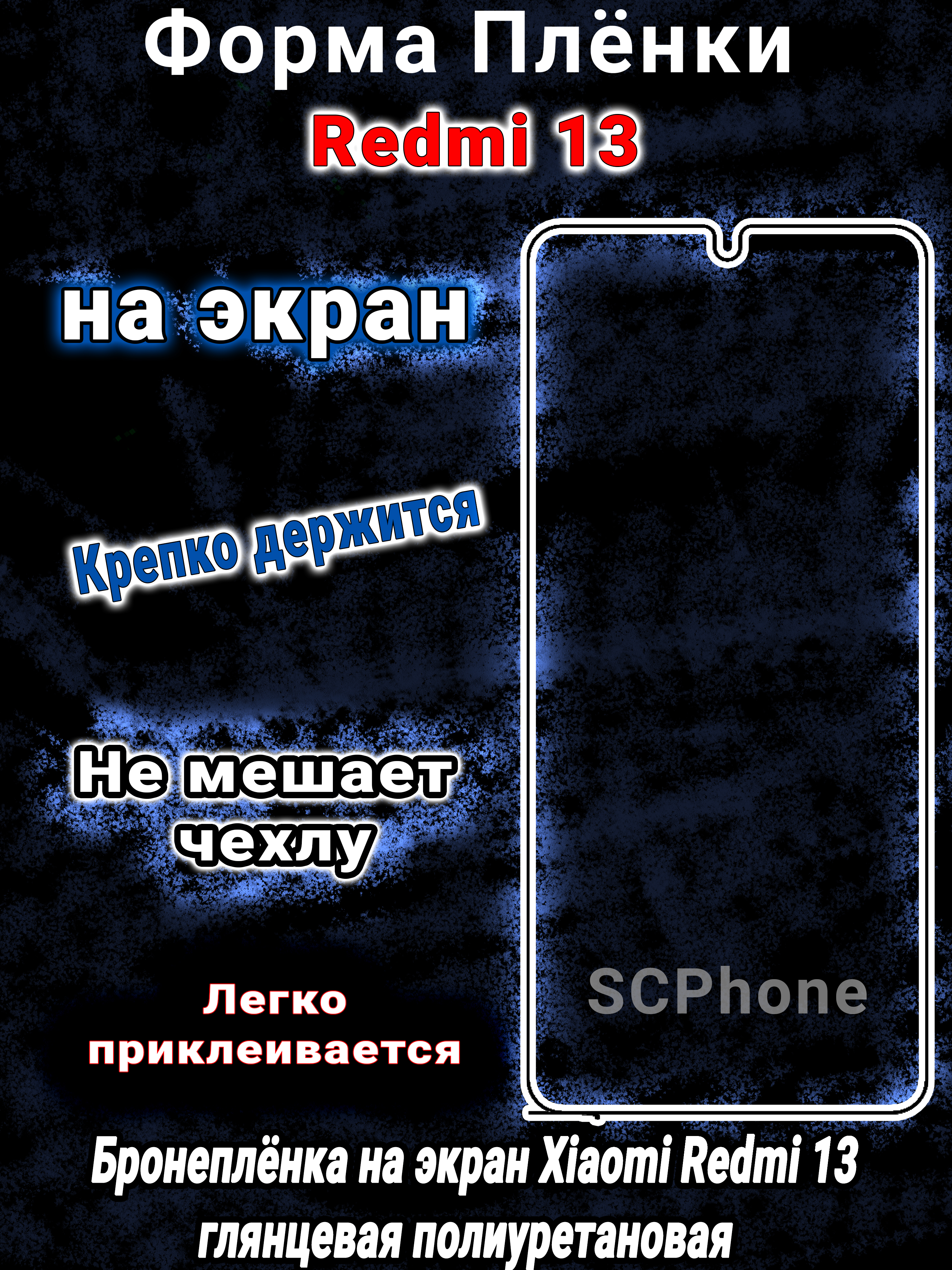 Бронеплёнка на экран Xiaomi Redmi 13 глянцевая полиуретановая