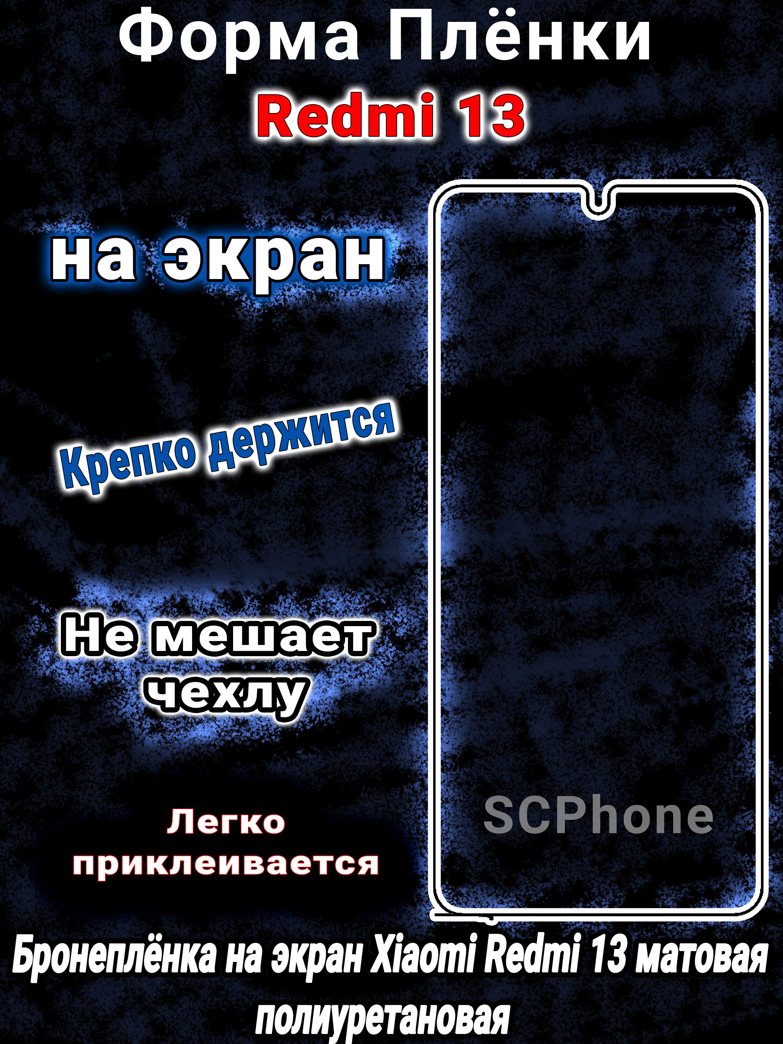 Бронеплёнка на экран Xiaomi Redmi 13 матовая полиуретановая