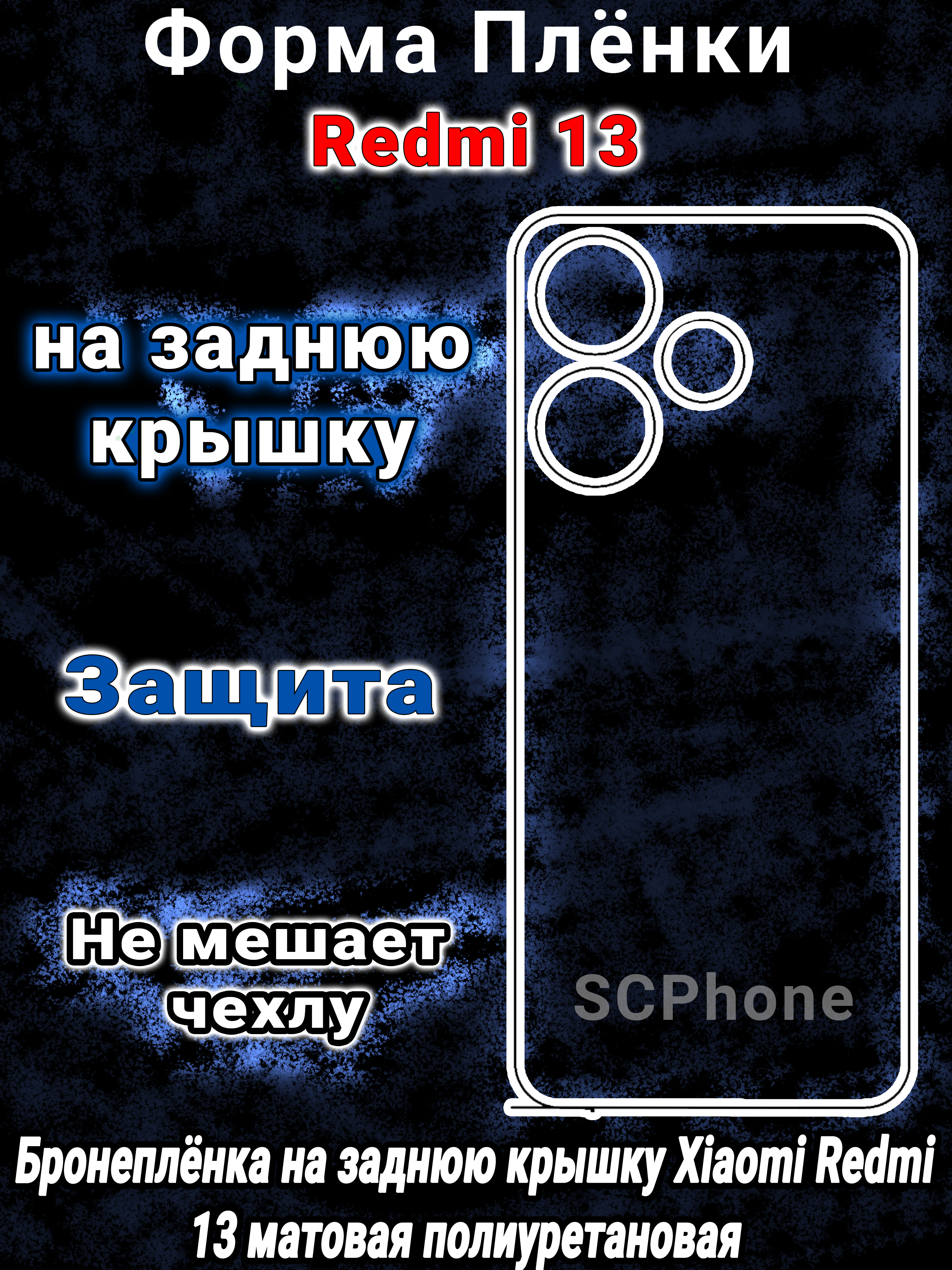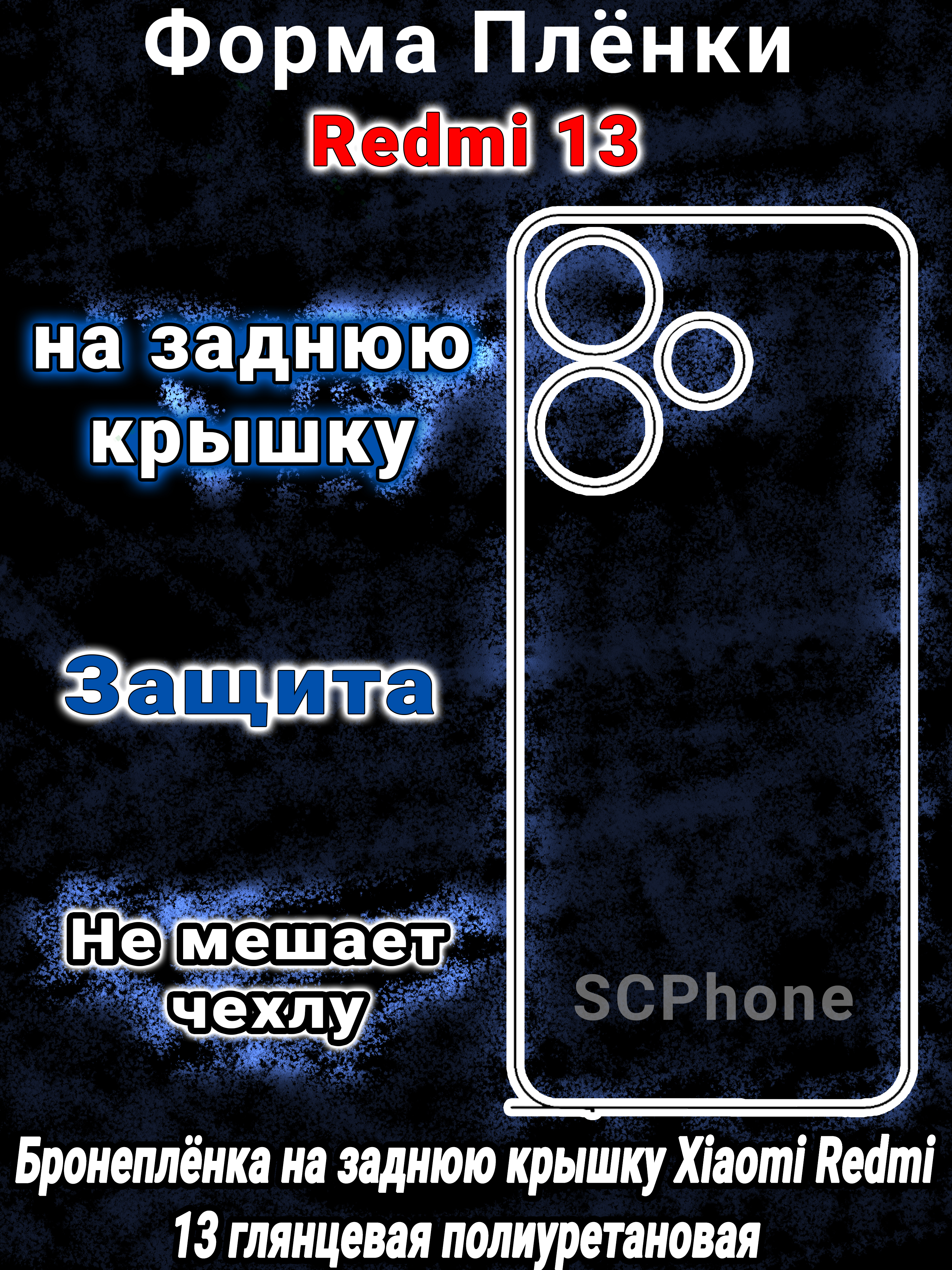 Бронеплёнка на заднюю крышку Xiaomi Redmi 13 глянцевая полиуретановая